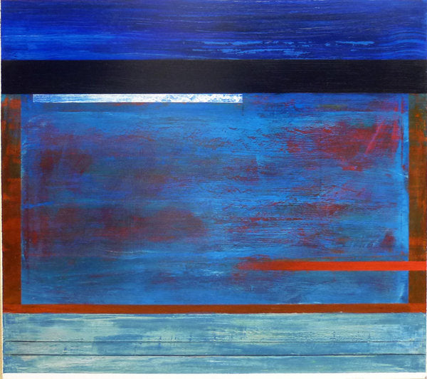 Adams creates structured abstract paintings and drawings and works in oils and acrylics on paper and canvas. Over the years his colour palette has progressed from bold primaries through to more muted shades. His recent work also employs a variety of mediums to add a textural dimension to his painting.