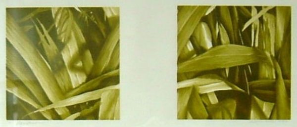 Andrea says about her work ?The process of printmaking teaches me to look at the details. Each different shade is carefully considered, each crack in the Bamboo is given value. I learn to appreciate the way small steps come together to create a full picture. I think this is reflected in my work, a little piece of my world is framed on white paper. The way the light shines through a flax leaf, the patterns that just happen when light meets shadows, when you twist something around and stand it on its head.