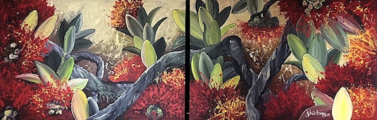 Janine paints a wide range of New Zealand themed subjects, including native birds, coastal scenes, trophy game animals, flowers and more abstract works and gets the most pleasure from painting very large pieces.