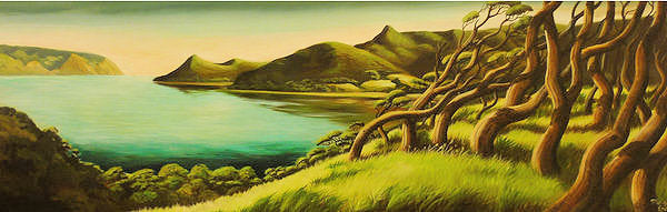 Her love of plants, trees, birds and water show throughout her work. This is never more apparent than in her latest stunning West Coast landscape paintings and in her intriguing Tree Ladies twisting on the canvas.