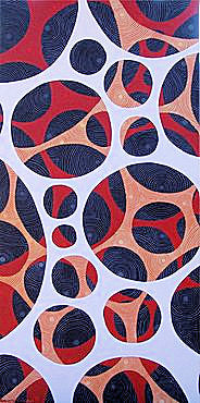 Acrylic on canvas is her predominant medium, and has also worked in water-colour on paper and mixed media.