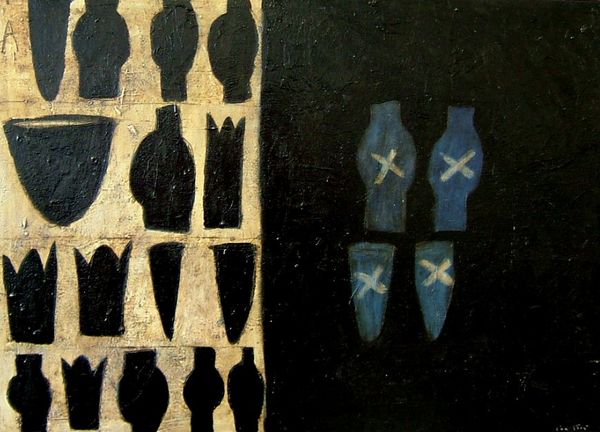 Cam’s unique pictorial language is comprised of juxtaposed shapes, symbols and markings. Simultaneously strange yet familiar, recurring motifs in her work derive from legend, history and belief systems. The artist’s restricted tonal palette serves to accentuate the significance of these cryptic markings: why are they there, and what – if anything - do they mean?