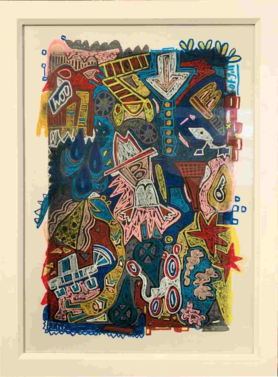 Chalk Pastel and Acrylic on Card - Framed in a White Frame
