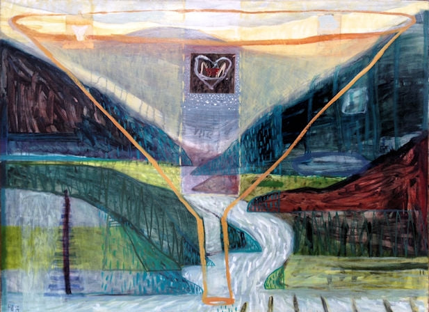 Hansen usually works in oil and acrylic on canvas. Her painterly abstract approach contains elements of recognizable imagery. Some ideas she has worked with recently are to do with environmentalism. Her paintings hint at ideas to do with cultivation and choice made within this field, global warming, ozone holes, division of land, farming, hybrids, genetic engineering and organics.
