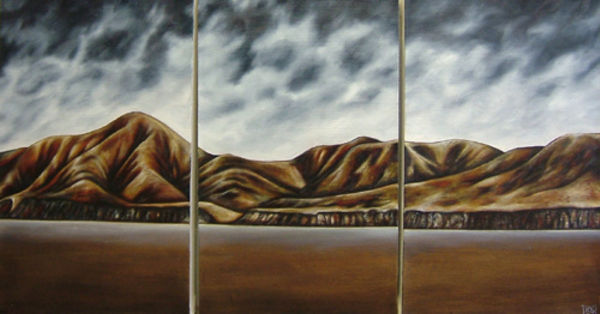 Karen was born in 1973 in Munich, Germany but has been based, when not travelling, in Wellington and Melbourne since 2000. Her moody and sparse landscape paintings reflect the countryside she has traveled through documenting both its light and character and her impressions of it. Richly painted in earthy tones and raw Indian pigments Karen's canvases are expressive - they evoke feelings of a rich but empty vastness, of escape into the natural wilderness.